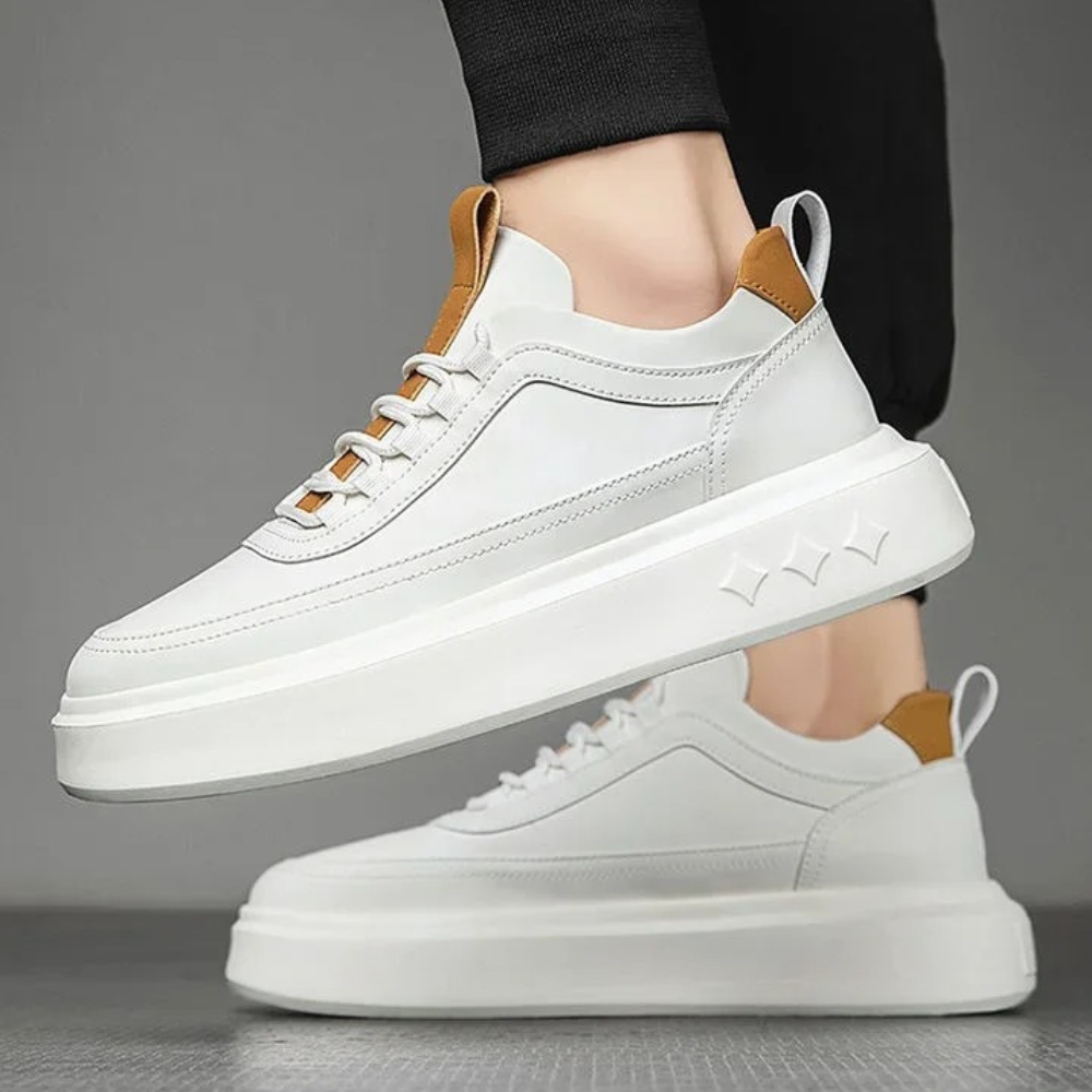 O Tênis Faustino é a escolha ideal para quem busca elegância e versatilidade. O design moderno combina a leveza do branco com detalhes em caramelo que fazem toda a diferença. Fabricado em couro e construção detalhada com costuras feitas a mão, oferece durabilidade e um visual refinado. Seu solado robusto de borracha e amarração com cadarço proporcionam excelente estabilidade, enquanto o interior macio garante máximo bem-estar ao caminhar.